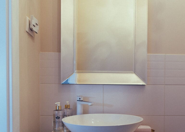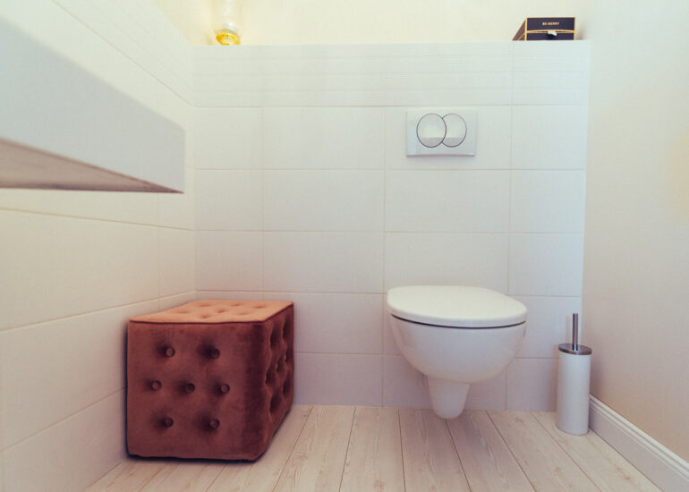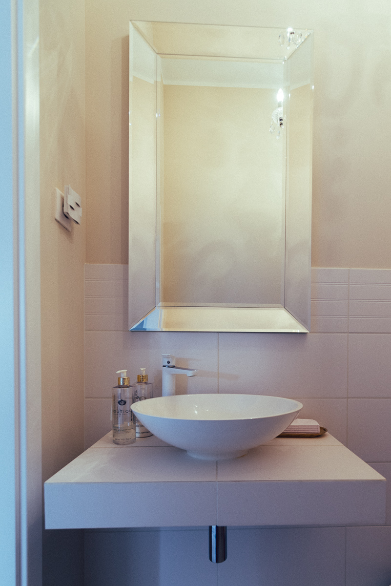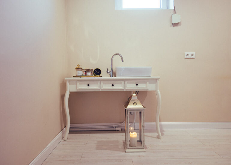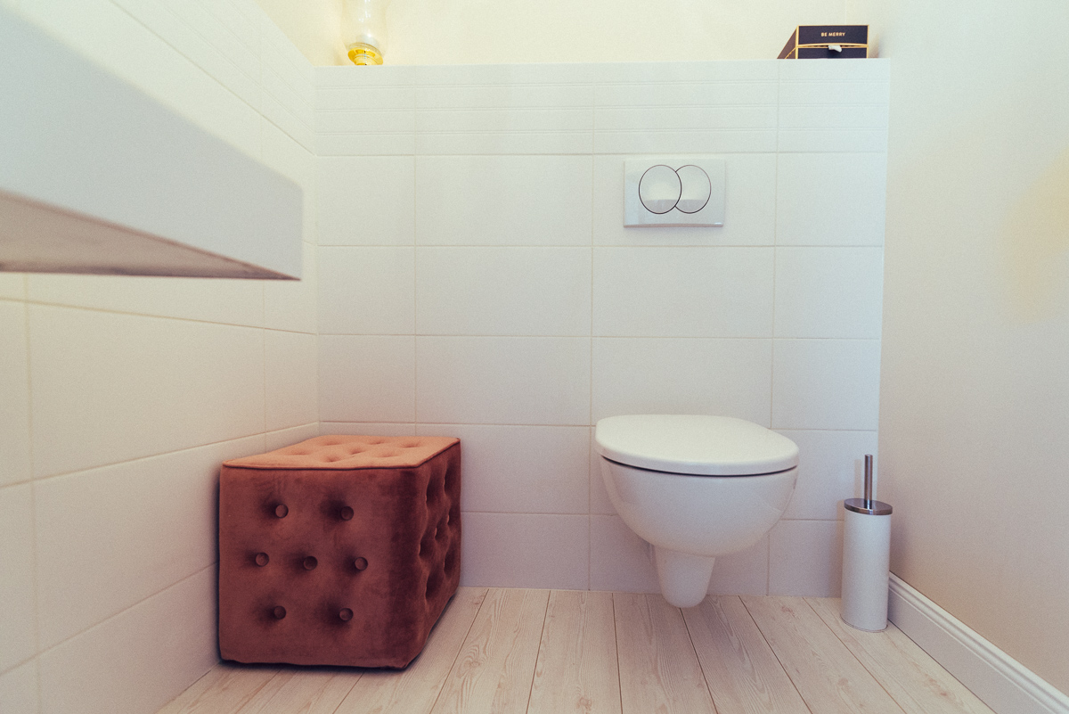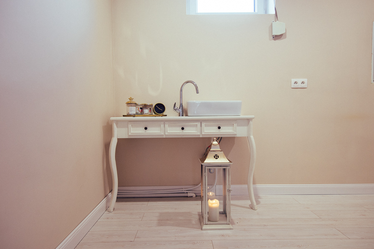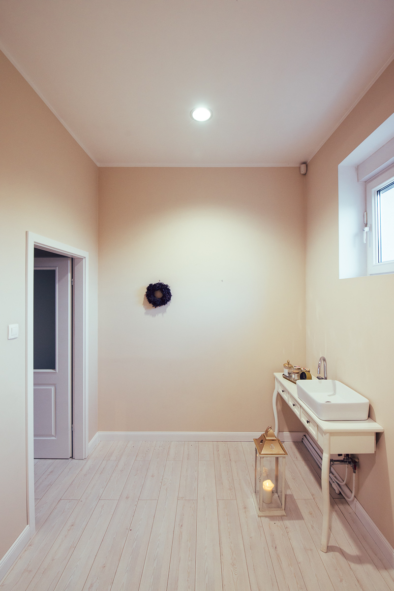 Fotografie recepcji, toalety, samego pomieszczenia wraz z jego mankamentami w postaci rur pod toaletką. Pokazujemy miejsce takie, jakim jest… jednocześnie pokazując jego potencjał.
